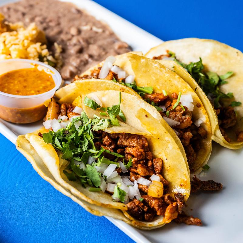(3) corn tortillas filled with beef skirt steak, served with cilantro, onion and lime, topped with our special extra “hot” sauce.