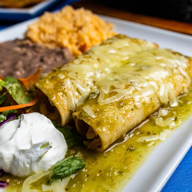 2 Enchiladas $13.99 | 3 Enchiladas $15.99 • Old-fashioned charbroiled beef or chicken, rolled in corn tortillas, topped with chile gravy.