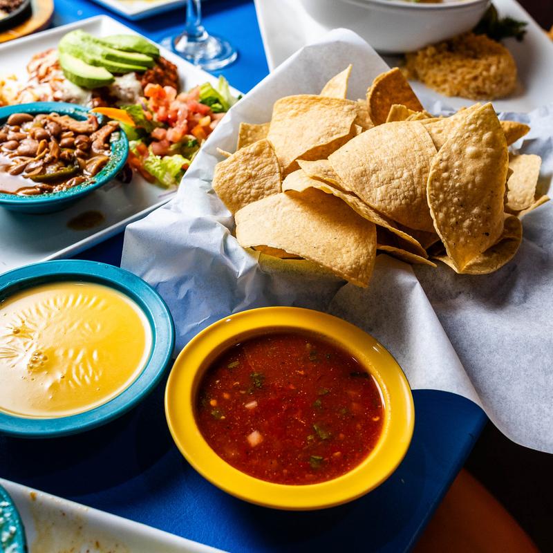 Guacamole salad, chile con queso, and (2) cheese enchiladas with choice of sauce.